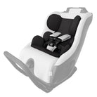Brother and sister riding in their Clek convertible car seats in rear-facing mode