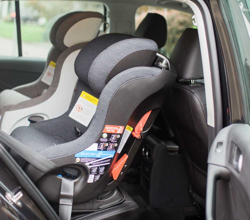 Fllo uses the same flexible LATCH belt for both rear and forward-facing installations